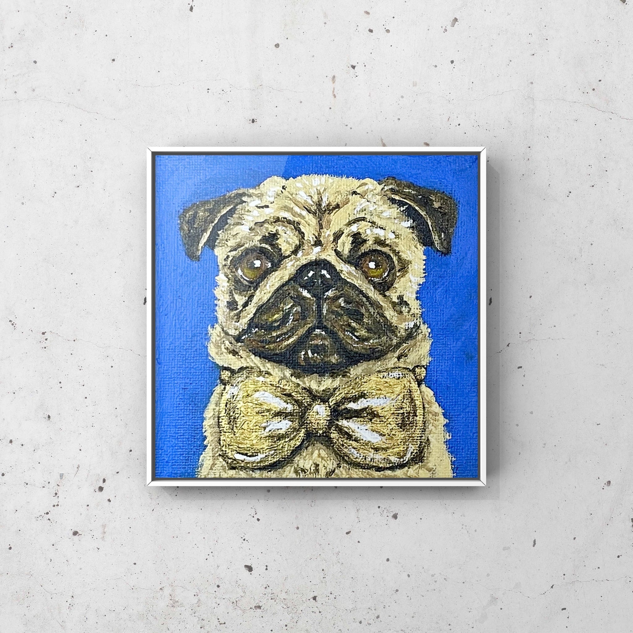 ミニキャンバス原画【一点もの】蝶ネクタイのパグ